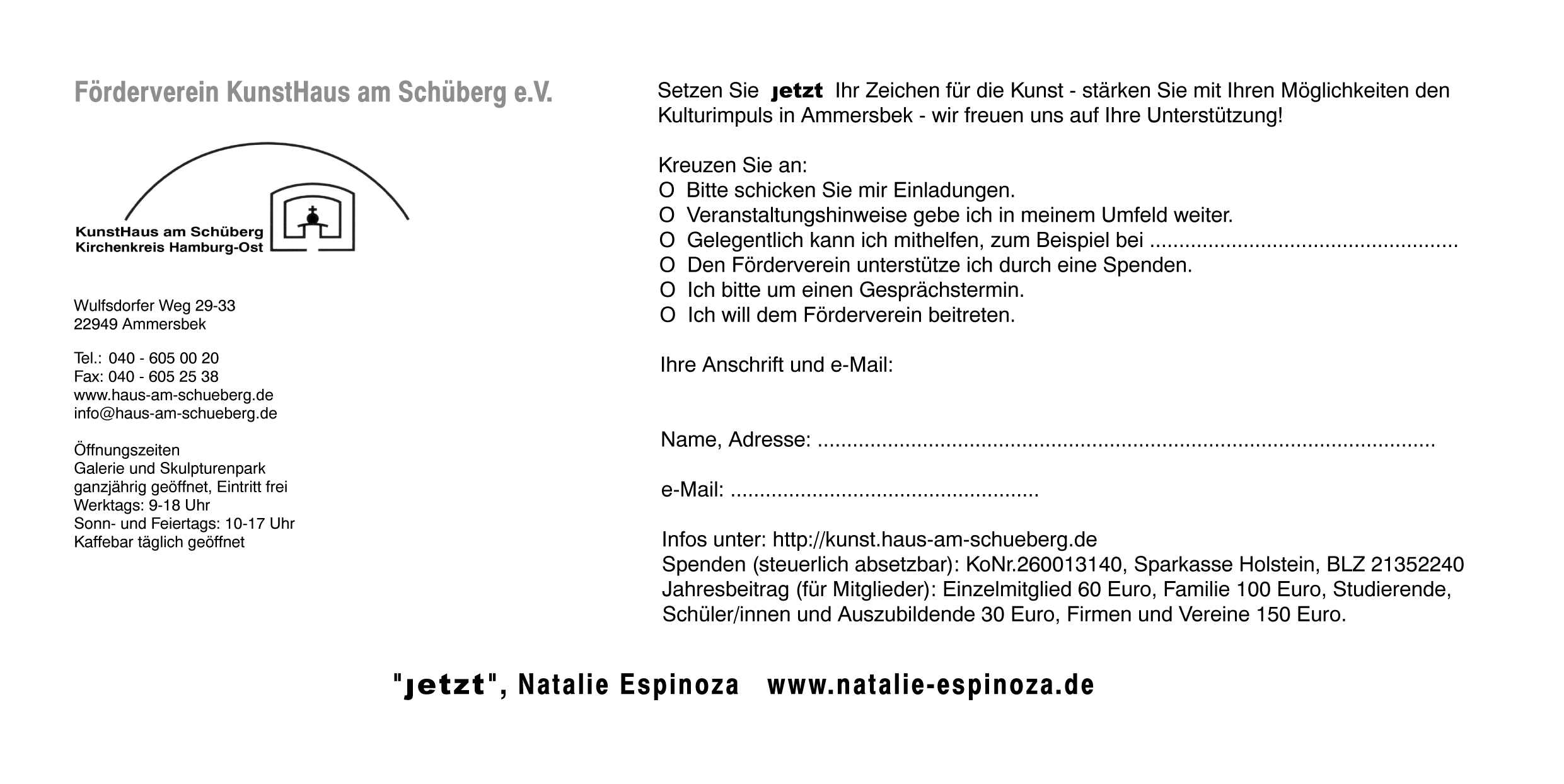 Postkarte Jetzt Förderverein KunstHaus 2012